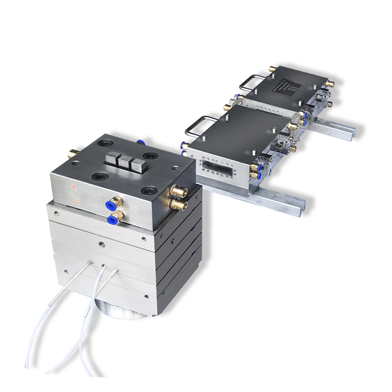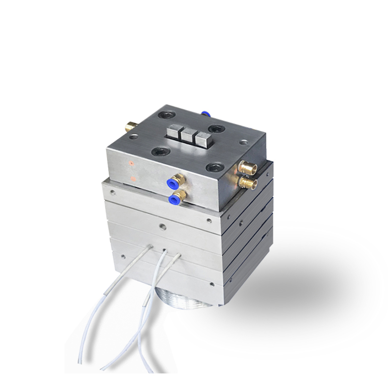 - Mould head is designed with inside and outside double circulating water cooling system to shape the profile quickly.